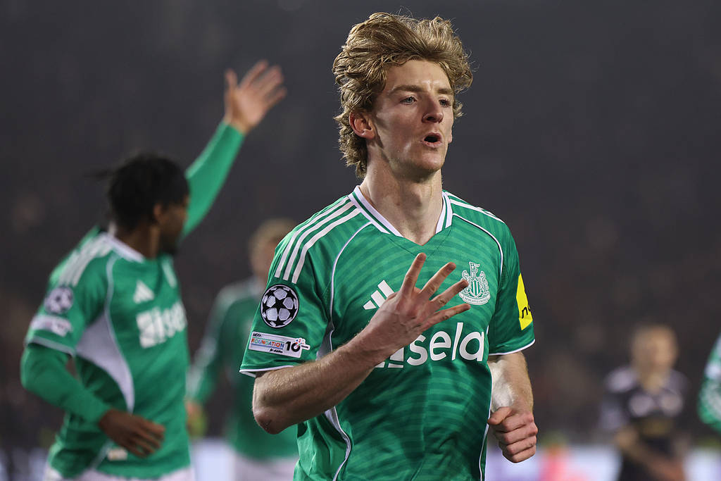 第45+1分钟,戈登弧顶断球顺势突入禁区被门将放倒,主裁判判罚点球,随后亲自主罚命中球门右侧,0-5,戈登半场完成大四喜,系纽卡欧冠队史第一人;纽卡成为欧冠淘汰赛历史上第二支半场领先5+球的球队,预期进球4.5球,系有记录以来欧冠半场最高。
